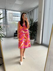 Bb 27164 Fuşya-Oranj Geçişli Floş Keten Elbise