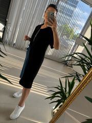 Dr 2703 Tasarım Fermuar Denim Detaylı Siyah Elbise