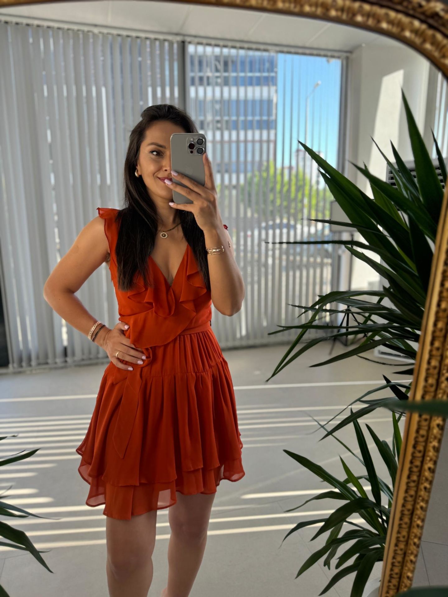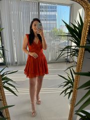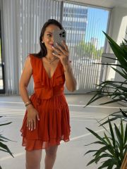 Mc 5842 Volanlı Kolsuz Kiremit Şifon Elbise