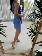 Mc5871TekOmuzDüğümDetaylıMaviElbise