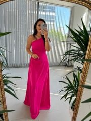 Mc 5956 Tek Omuz Detaylı Fuşya Elbise