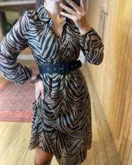 Midi boy Vizon zebra şifon elbise